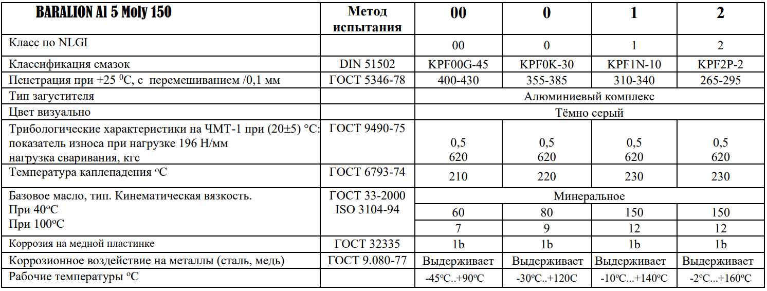 Применение: BARALION Al 5 Moly 150 - идеальна для деталей горнодобывающего оборудования таких как: зубчатые рейки, валы и направляющие корпуса, рукояти ковшей экскаваторов, закрытые редукторы, а также рекомендуется для использования в медленно движущихся подшипниках и втулках.